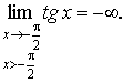 Если аргумент х приближается к левому концу указанного интервала, то функция y = tg x неограниченно убывает.