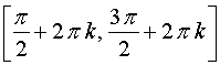 - 2) принимает наибольшее значение, равное 1, при x = 2 π k и наименьшее значение, равное -1, при х = π + 2 π k;