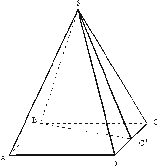 SABCD - пирамида, основание которой есть квадрат ABCD. Какую часть объёма этой пирамиды составляет объём пирамиды SABC'D, где С'CD и СС' = С'D?