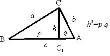 | Теорема. Квадрат высоты, опущенной из вершины прямого угла, равен произведению отрезков, на которые эта высота разбивает гипотенузу.