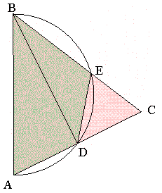 Площадь четырёхугольника найдём как SABED = SABC - SDEC. Отрезок ЕС найдём из свойства секущих окружности, проведённых из внешней точки:
