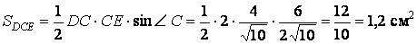 .AC·DC = DC·EC Площадь треугольника SDCE найдём по двум сторонам и синусу угла между ними