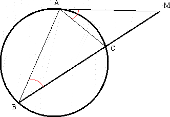Теорема 2. Если через точку М, взятую вне окружности, провести к этой окружности секущие, то произведение каждой секущей на её внешнюю часть есть величина постоянная, равная квадрату касательной.Доказательство. Пусть вне окружности дана точка М, через которую проведены касательная МА и секущая МВ. Соединим точку касания А с точками В и С, получим два подобных треугольника ВАМ и САМ, так как ∠ М у них общий, а ∠ В = ∠ САМ как опирающиеся на одну и ту же дугу АС. Из подобия этих треугольников имеем