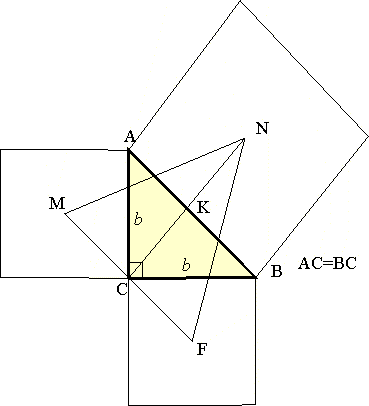 - На сторонах ранобедренного прямоугольного треугольника с катетом b построены квадраты во внешние стороны. Центры этих квадратов соединены между собою прямыми линиями. Найти площадь получившегося треугольника.
