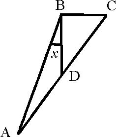 Выполним рисунок задачи Дополним треугольник АВС до параллелограмма Треугольник АВЕ является прямоугольным, кроме того ВЕ = 2 BD. Поэтому . Таким образом, х = 30°.