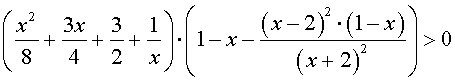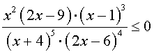 | 51 | ( x + 3)·( 3 x − 2 )5·( 7 − x)3·( 5 x + 8)4 ≤ 0 | 52 | ( x2 − 3 x + 2)2·(x3 − 3 x2)·(4 − x2) ≤ 0 |