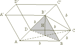 - Основания параллелепипеда - квадраты со стороной b, а все боковые грани - ромбы. Одна из вершин верхнего основания одинаково удалена от всех вершин нижнего основания. Найдите объем параллелепипеда. Решение.
