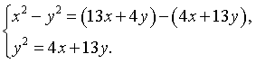 Вычтем второе уравнение из первого. Получим систему, равносильную исходной системе