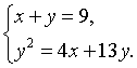 Каждую из систем (3) и (4) решим методом подстановки. Из системы (3) находим решение (0; 0), (17; 17). Для системы (4) находим ( − 3; 12), (12; − 3). Поскольку в процессе решения системы выполнялись только равносильные преобразования, то найденные решения являются и решением исходной системы.
