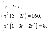 Данная система является системой однородных уравнений. Обратим внимание, что пара ( 0; 0 ) не является решением системы. Положим y = t·x. Система примет в этом случае вид