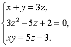 К системе вида (6) применима обратная теорема Виета и решениями этой системы будут ( 1; 2) и ( 2; 1). Следовательно для случая z1 = 1 решениями второй системы совокупности (2) будут ( 1; 2; 1) и ( 2; 1; 1).