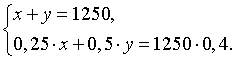 Пусть x – масса первого состава никеля, y – масса второго состава никеля. Тогда условия по массе и по концентрации приводят к состеме Решением этой системы будет x = 500 кг, y = 750 кг.