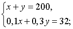 | 2-й раствор | 30%, или 0,3 | 200 − x | 0,3·(200 − x) |