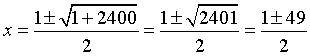 x1 = 50, x2 = − 24. Второе решение не соответствует условию задачи (НУЗ).