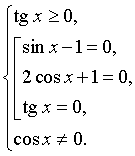 Уравнение равносильно системе и совокупности условий Укажем на тригонометрическом круге, где выполняются эти условия Из рисунка видно, что допустимыми решениями являются x = π n и