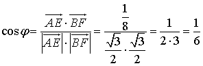 . - В кубе A ... Dl точки Е, F — середины ребер соответственно AlBl и ВlСl. Найдите косинус угла между прямыми АЕ и BF.