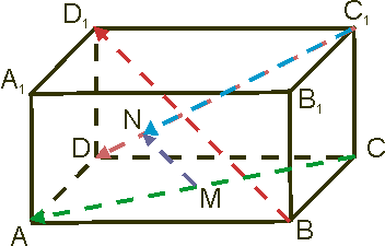 - АВСDA1B1C1D1 – параллелепипед, АС и DC1 – диагонали его граней. Доказать, что существует и при том единственная пара точек M ∈ (AC) и N ∈ (DC1) такая, что (MN) || (BD1). Найти отношение | MN | | BD1 |.