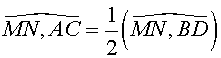 - Точки М и N — середины ребер ВС и AD тетраэдра ABCD, в котором | АС | = | BD |, а угол между прямыми АС и BD равен α. Найти угол между прямыми MN и АС (найти все решения).