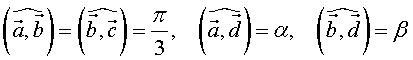 - Даны четыре вектора a, b, c и d. Векторы a, b, c компланарны, но попарно не коллинеарны, вектор d не компланарен с векторами a, b, c. Известно, что