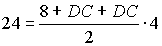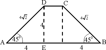 и условия видно, что высота трапеции равна h = 4. Кроме того, большее основание трапеции равно AB = 8 + DC. Используем формулу площади трапеции