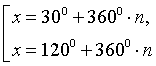 видно, что условию 0 < x < 90° удовлетворяет только решение x = 30°.
