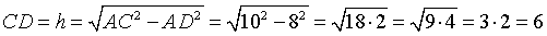 По условию задачи АВ = 16 см, АС = СВ = 10 см. Проведём высоту CD. В равнобедренном трейгольнике АВС высота CD является также его медианой, то есть AD = DB = 8 см. Из прямоугольного треугольника ACD по теореме Пифагора найдём