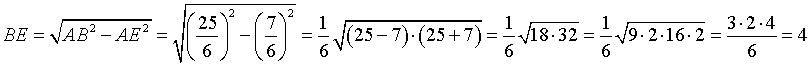 Из треугольника ABE по теореме Пифагора найдём высоту BE ромба