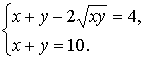 , где х и у являются положительными решениями системы