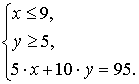 Решение. Пусть х — число пятикопеечных монет, у — число десятикопеечных. Тогда по условию задачи