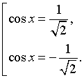 - Учитывая обозначение п.2, получим противоречивое равенство cos2x = - 3/4 и уравнение cos2x = 1/2, которое равносильно совокупности двух уравнений