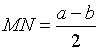Выполним рисунок задачи. ABCD – трапеция. АВ = а – большее основание, CD = b – меньшее основание. MN – отрезок, соединяющий середины оснований, и по условию . Проведём из точек С и D прямые, параллельные отрезку MN. В этом случае