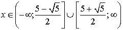 Если ввести обозначение y = 5 x - x2 - 5, то уравнение примет вид | y | = - y, откуда получаем условие y ≤ 0, то есть 5 x - x2 - 5 ≤ 0, или x2 - 5 x + 5 ≥ 0.